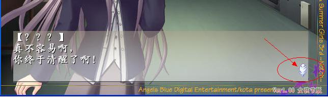 一般AVG游戏中,在对话完之后,总会在对话框的最最下面显示一个图标(就像是图中显示的那样),有的图标还是会动的那种~默认KR的图标是显示文字的后面,显示的回车符号。请问下,如何在在对话框的最最下面自定义显示出自己想要的图标呢?