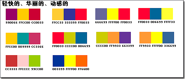 下面贴点我觉得不错的配色图案例,可以挑自己喜欢的进行搭配,剩下修饰手法的就要看每个人自己的审美观和经验来处理了。